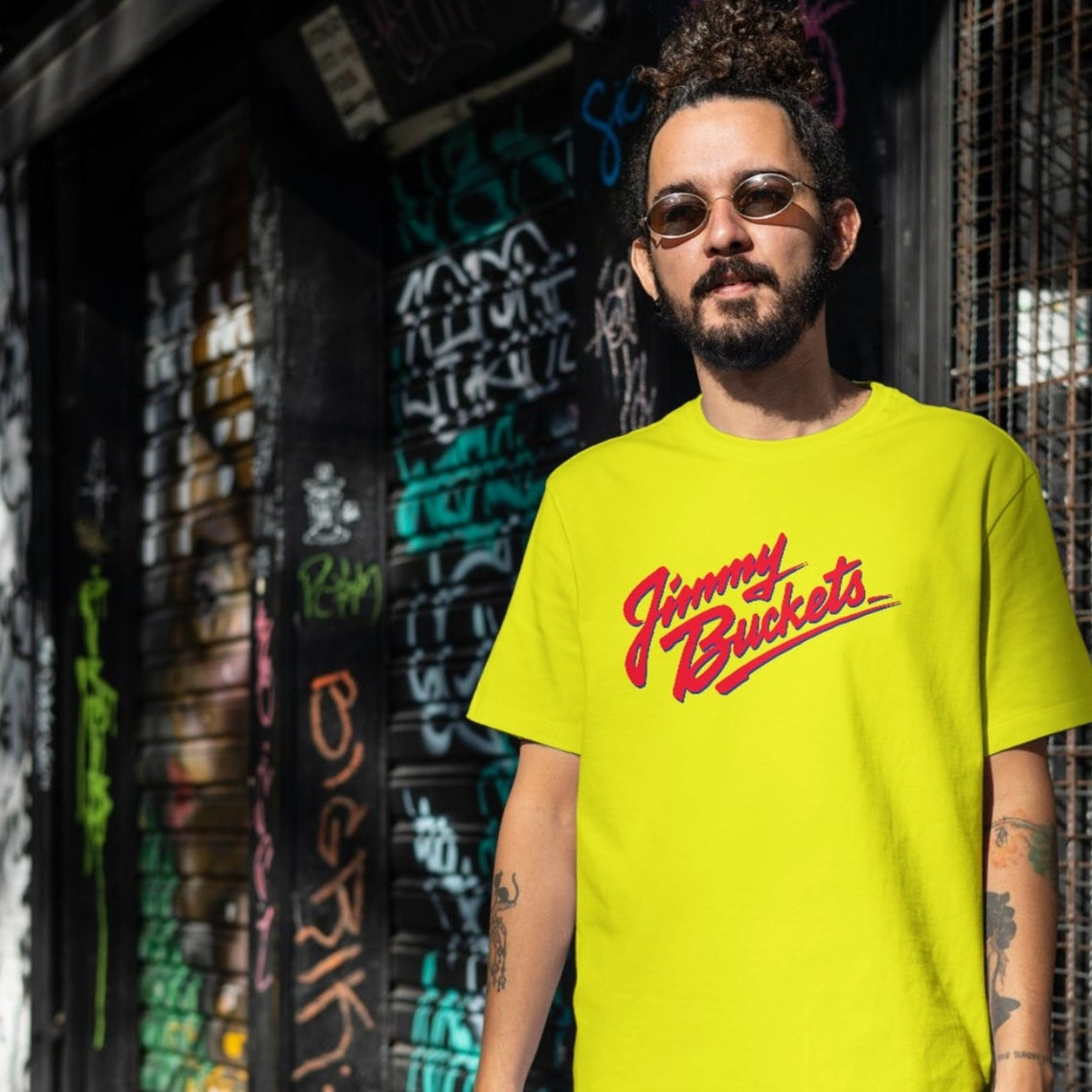 Jimmy Buckets / Buffett 2025 Playoff Shirt - Warrior Yellow, Blue & Red Jimmy Buckets "Changes in Latitudes" Playoff T Avail Now!